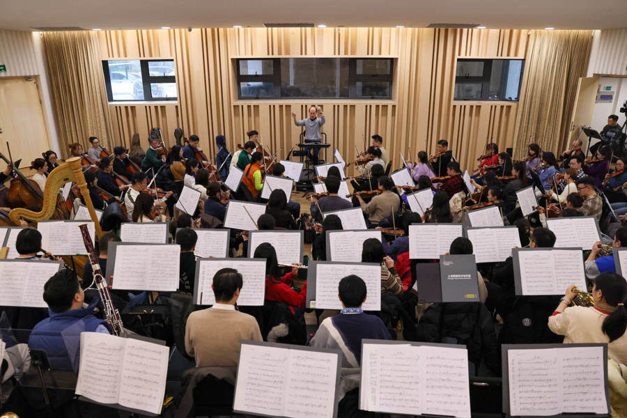 发布会结束后,即将于1月10日上演的上海歌剧院新年音乐会对媒体开放排练,指挥家张国勇将再度执棒上海歌剧院合唱团与交响乐团,以精准细腻的指挥技艺驾驭全场。